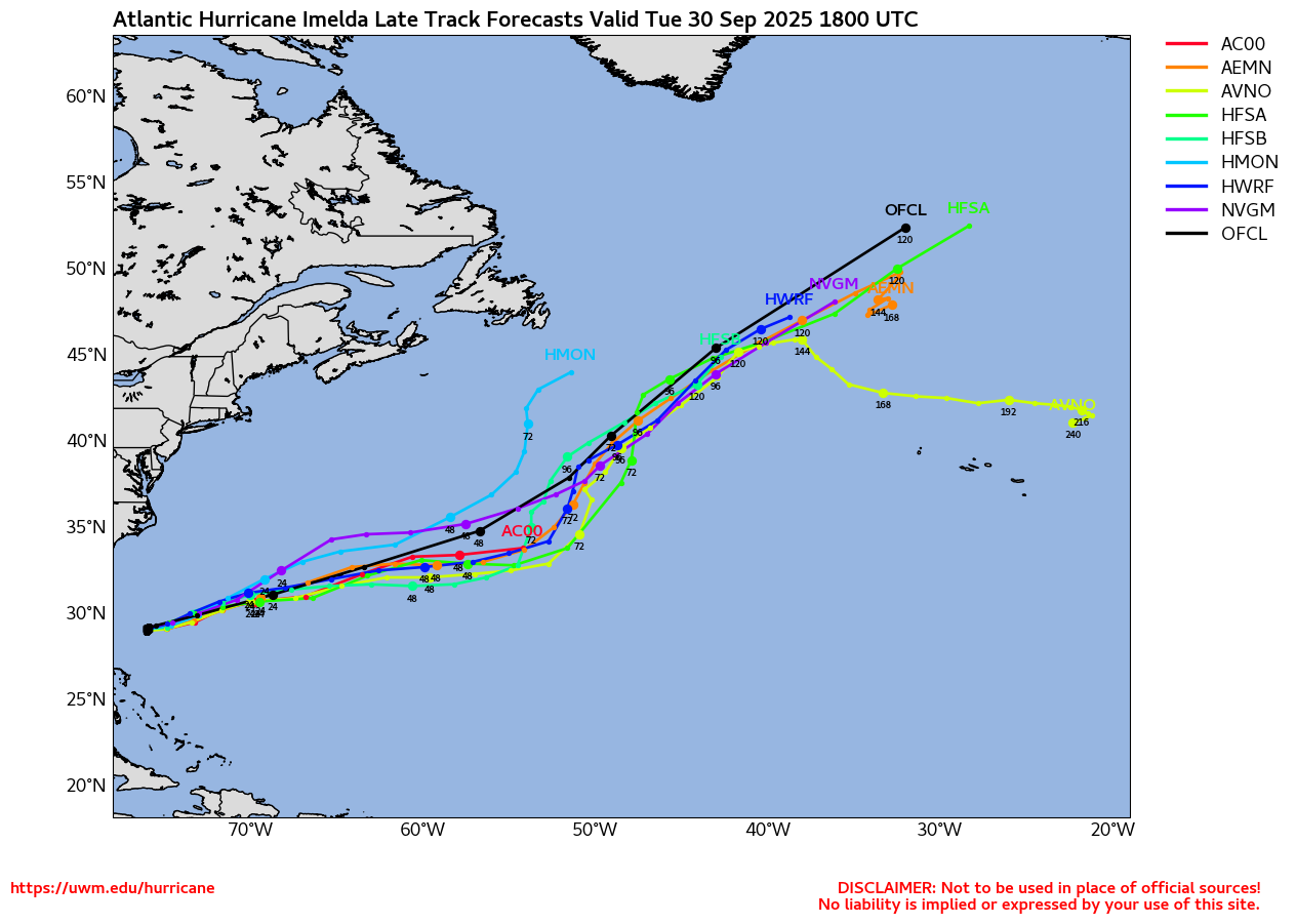 UWM Late Cycle Spaghetti Models for IMELDA showing potential paths