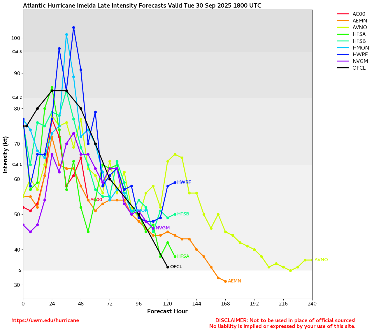 UWM Late Cycle Spaghetti Models for IMELDA showing possible intensities